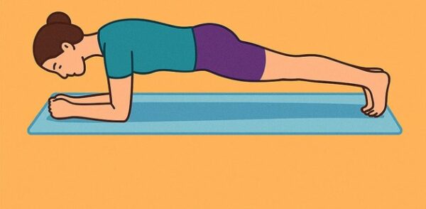 Prkno – pak přejdi do pozice „prkna“. Ležíš na břiše, zvedneš se na předloktích, tělo tvoří přímku od hlavy po paty. V této pozici setrvej 20 vteřin a soustřeď se na dech. Skvěle zpevníš střed těla.