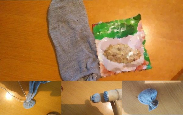 2/Ponožku zavažte provázkem, nebo tkaničkou