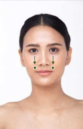 YINGXIANG: Body pod lícními kostmi po obou stranách nosu. Masáž těchto bodů může pomoci při stresu, nervozitě a bolesti zubů.
