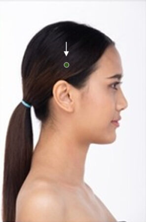 SHUAI GU: Body nad ušima. Masáž těchto bodů může zmírnit migrénu způsobenou únavou a nedostatkem spánku.