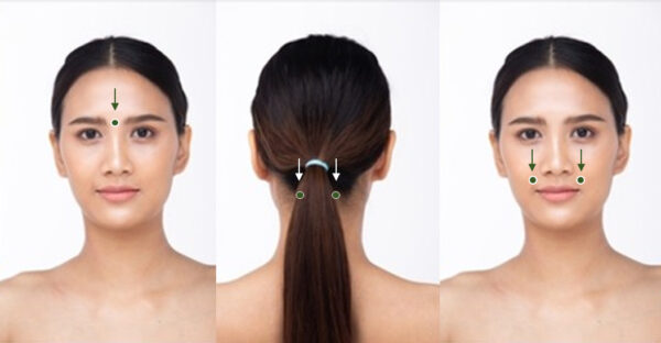 YINTANG (Třetí oko): Tento bod se nachází mezi obočím u kořene nosu. Masírování tohoto místa pomáhá ulevit od migrény a unavených očí.